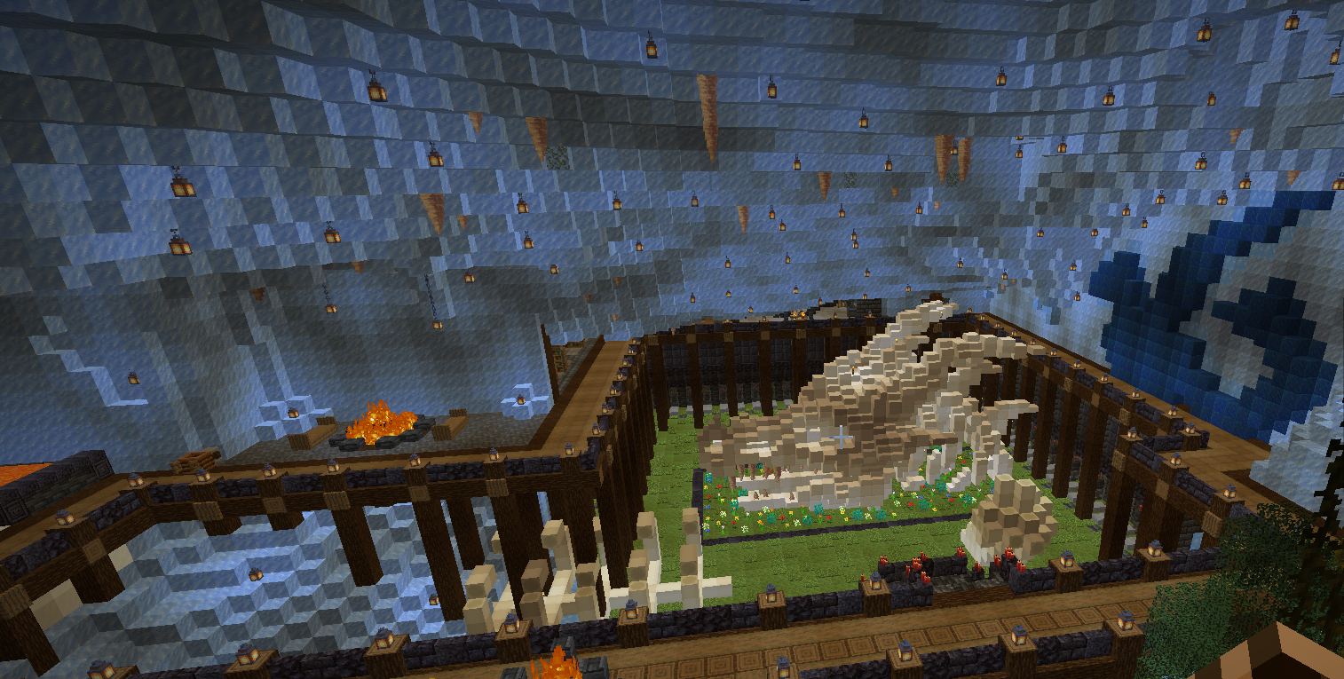 Deep beneath the snow-covered peaks, the Miners Build Team constructed The Dragon’s Lair — a massive frozen cavern where ancient dragon bones lie.