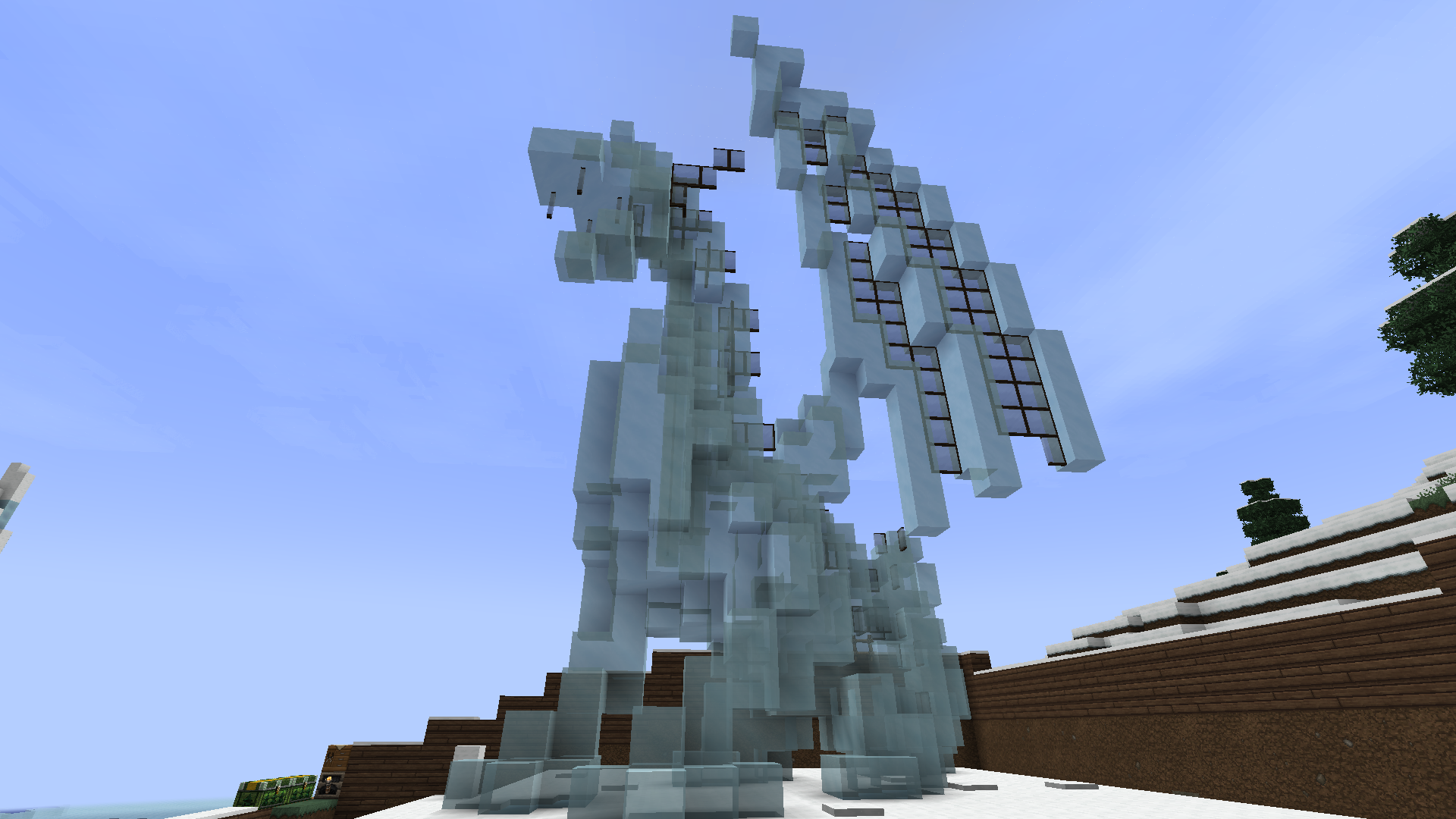 Built entirely from ice, this statue gleams under the moonlight — a breathtaking tribute to the dragons of Skyrim.