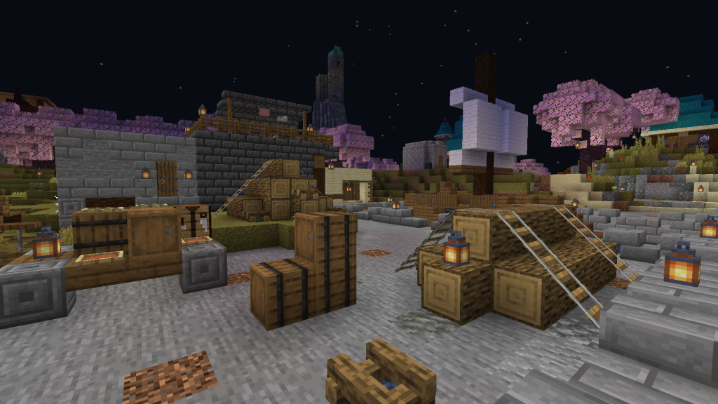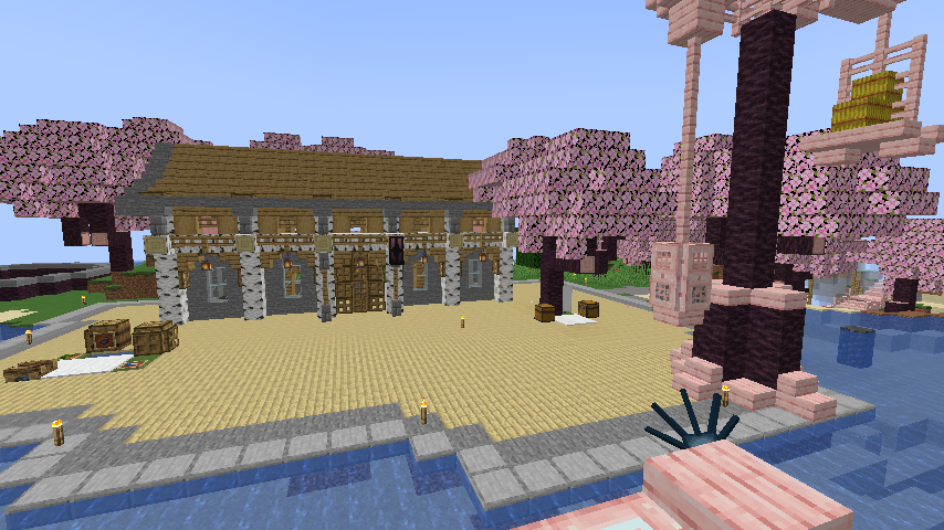 A peaceful birchwood and stone cottage nestled beside the ocean, framed by custom cherry trees. DaeCla’s build feels like a tranquil retreat for travelers and sailors seeking rest between journeys — a whisper of Summerset Isles elegance on the northern shore.